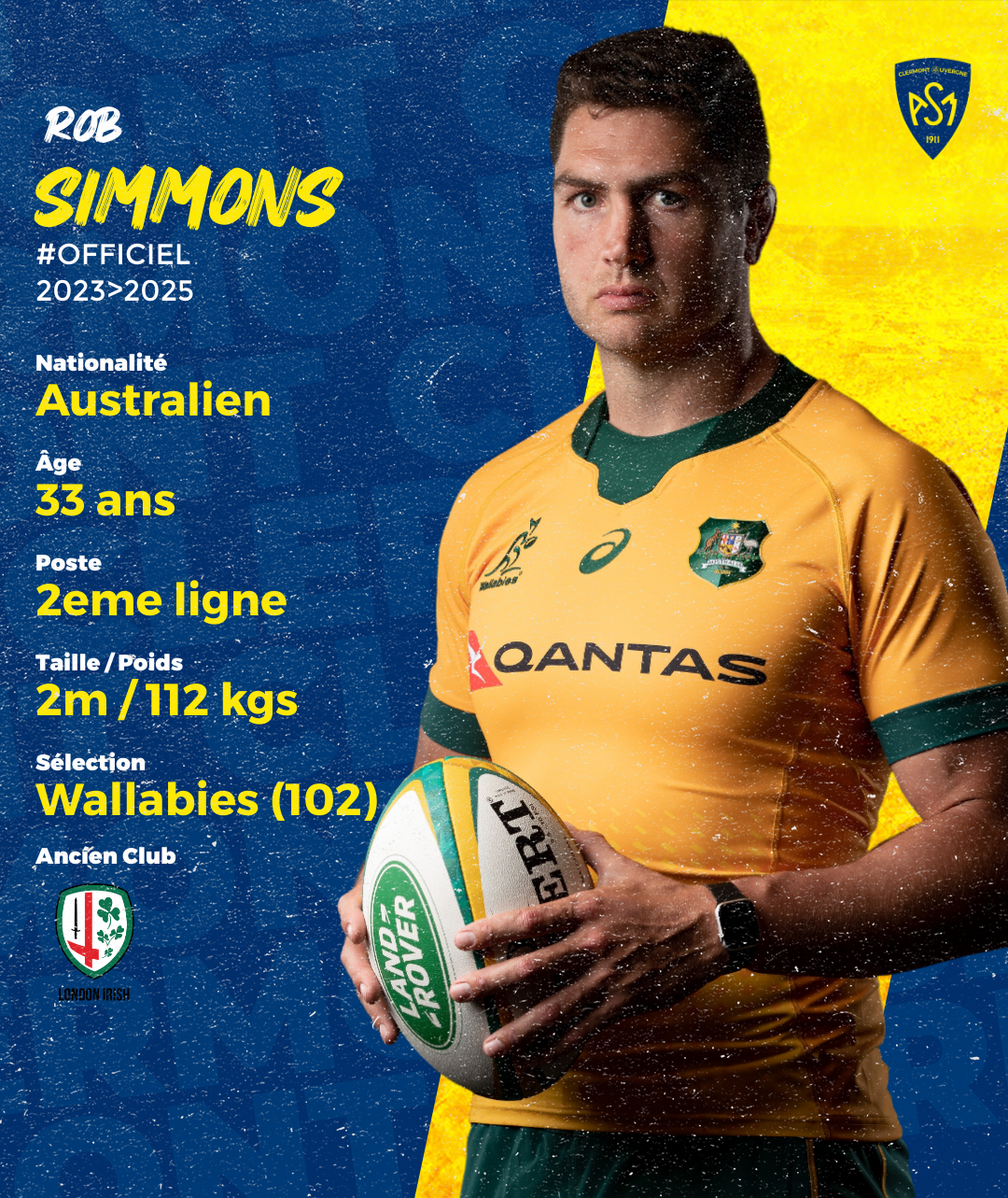 Le recrutement ambitieux des Auvergnats se poursuit avec la signature pour deux saisons de l’international australien aux 102 sélections, Rob Simmons. Après 12 saisons dans le Super Rugby (154 matches disputés) et 3 Coupes du Monde (2011, 2015 et 2019), le seconde ligne des Wallabies avait choisi de donner un nouveau tournant à sa carrière en rejoignant les London Irish en 2020. Après 3 saisons pleines en Angleterre (62 matchs joués), c’est à Clermont qu’il apportera toute son expérience du très haut niveau. Après les internationaux Mohamed Haouas, Pita-Gus Sowakula, Folau Fainga’a et Marcos Kremer c’est un nouveau renfort de poids qui vient donner de l’épaisseur au pack auvergnat pour les nouvelles saisons. De quoi réjouir le coach des Jaune et Bleu, Christophe Urios. « On avait besoin de densifier le pack pour les saisons à venir avec des joueurs de haut-niveau, l’arrivée de Rob s’inscrit dans cet objectif. Il va nous amener toute son expérience au niveau de la conquête et du caractère. Pour moi, c’est un vrai 4 de très haut-niveau capable d’enchainer les rencontres avec beaucoup de régularité comme ses dernières saisons en Angleterre le montrent. Il a envie de changer la trajectoire du club et de remplir ce maillot de l’ASM : le genre de joueurs sur lequel je vais pouvoir m’appuyer. »